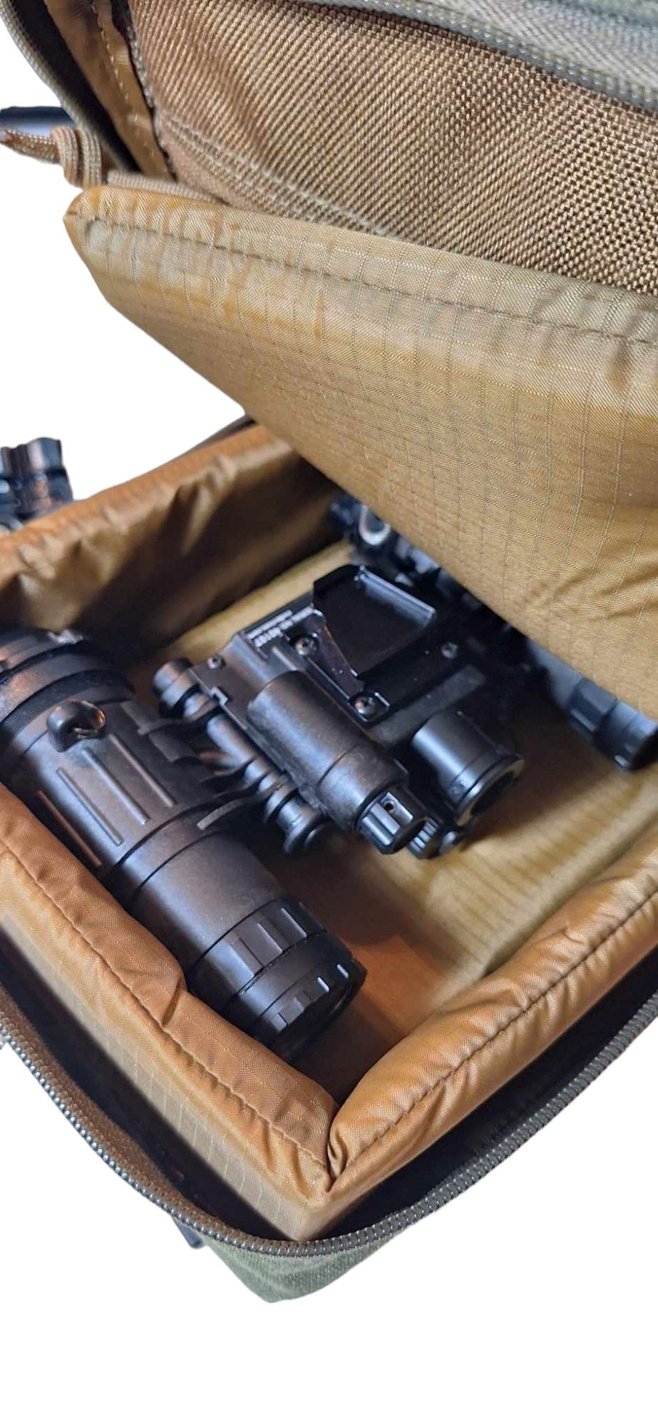 NOTE: Effective 06/17/2025, all Field Deployment Pouches will ship with the War Hammer Armaments Faraday inserts included. This is the final evolution of the perfect multi layered protection between the original IR compliant, NIR certified, Berry Compliant, water resistant, hard impact protection afforded via the “Chobham” profile multi layer/multi density closed cell maritime waterproof floating foam pads customized exactly to tailor fit for both articulating dual tube, & AN/PVS-14 style (monocular) tube devices while still allowing the “J-Arm” to stay attached for instant rapid deployment, and now being dual spectrum EMP protecting (man made & nuclear derived frequencies), your extremely expensive investment could not be better protected.